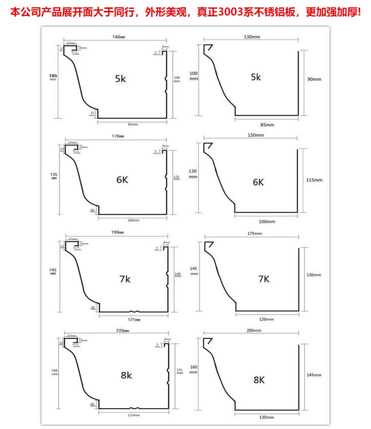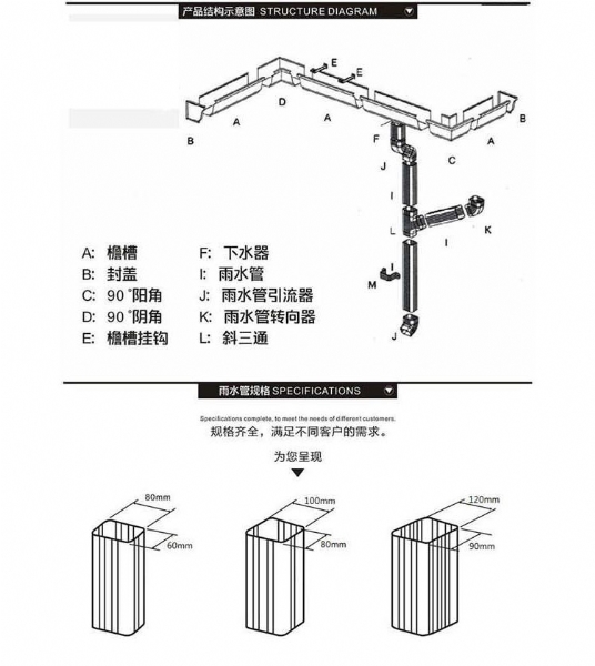 成品天溝生產(chǎn)廠家主營(yíng)產(chǎn)品有:天溝雨水管、鋁合金雨水管、彩鋁落水管、鋁合金落水管等